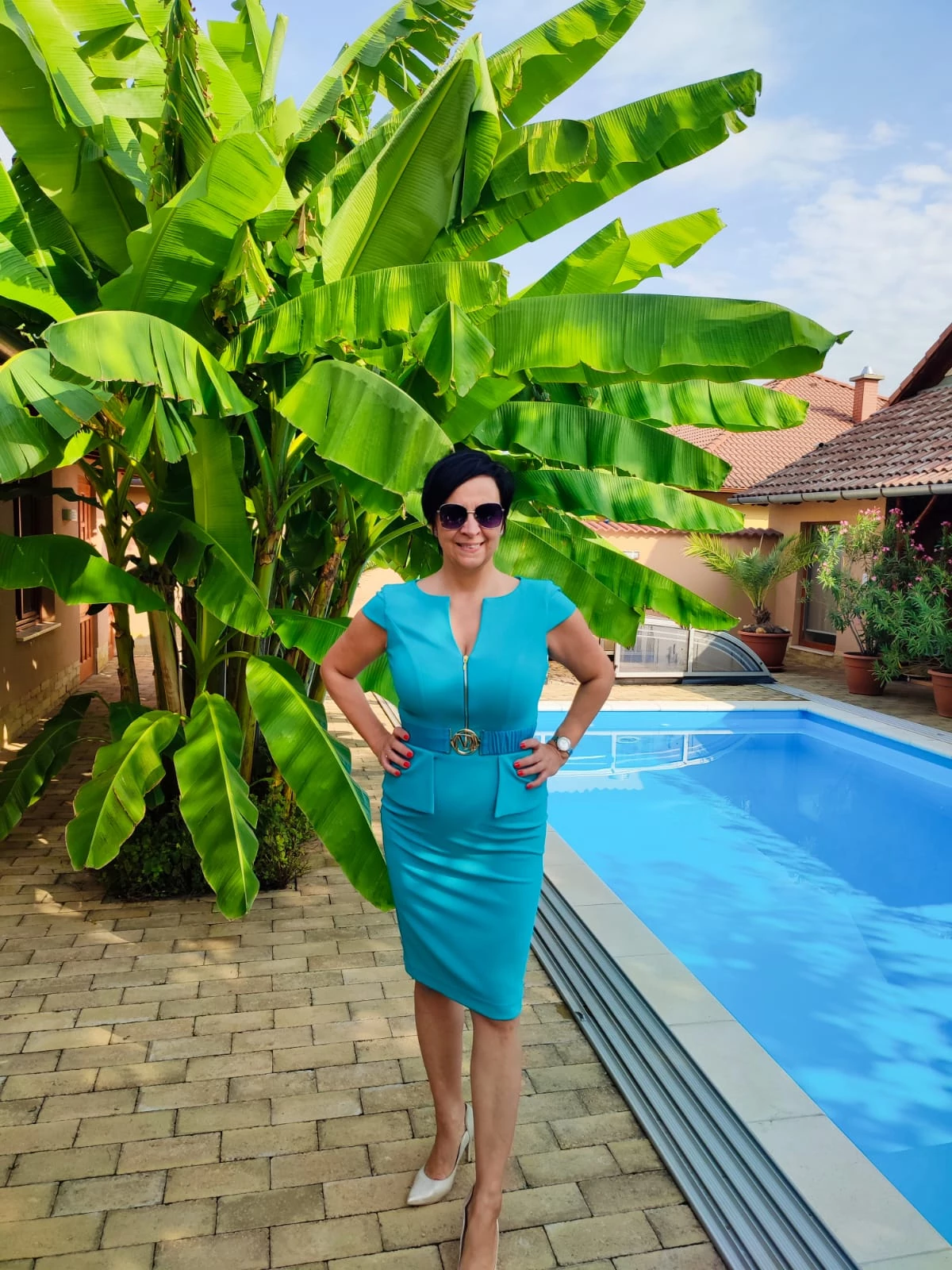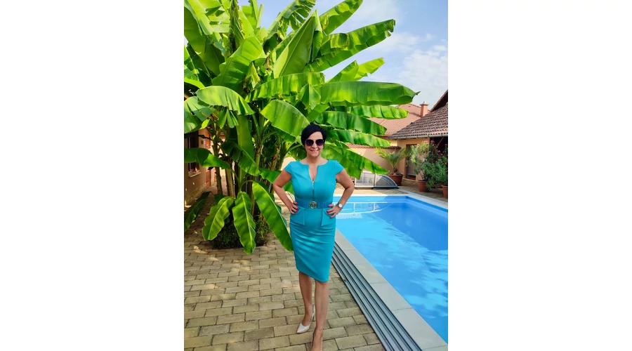 Mystic Day Ramina ruha -türkiz kék színű -v kivágott -elől cipzár díszíti -derékban szabott -hátul cipzáros -öv a tartozáka |